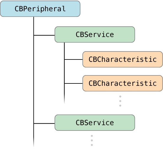 CoreBluetooth框架的核心其实是两个东西,peripheral和central, 可以理解成外设和中心。对应他们分别有一组相关的API和类