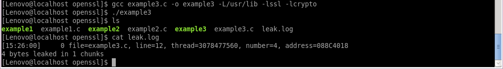 gcc example3.c -o example3 -L/usr/lib -lssl -lcrypto
